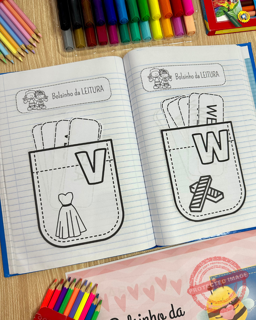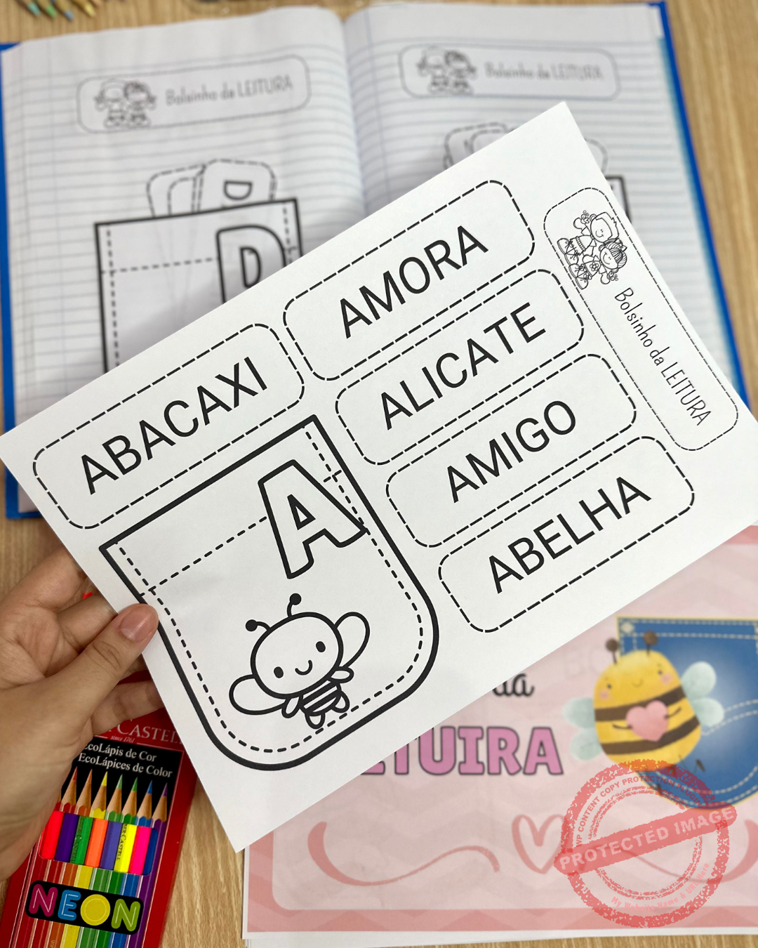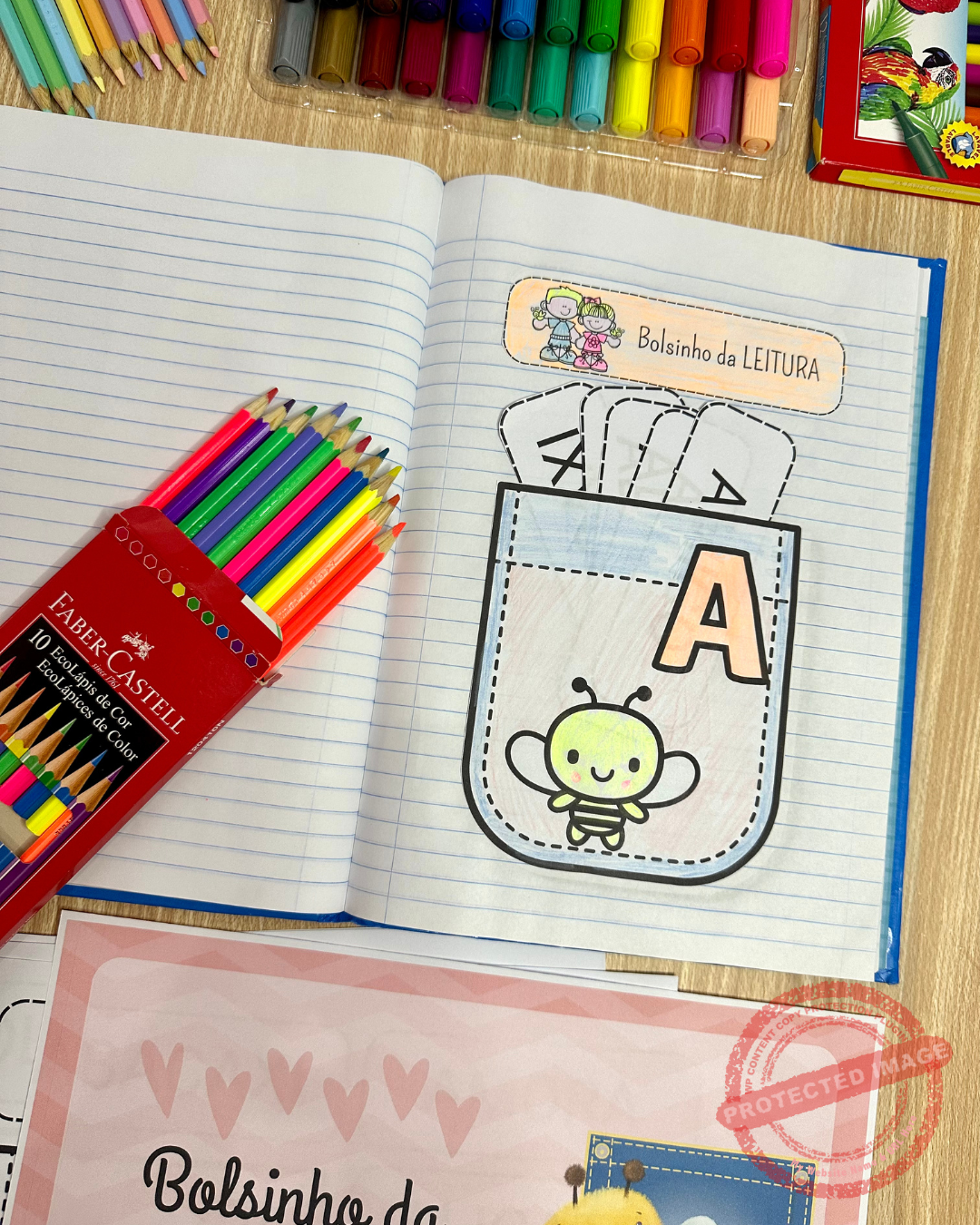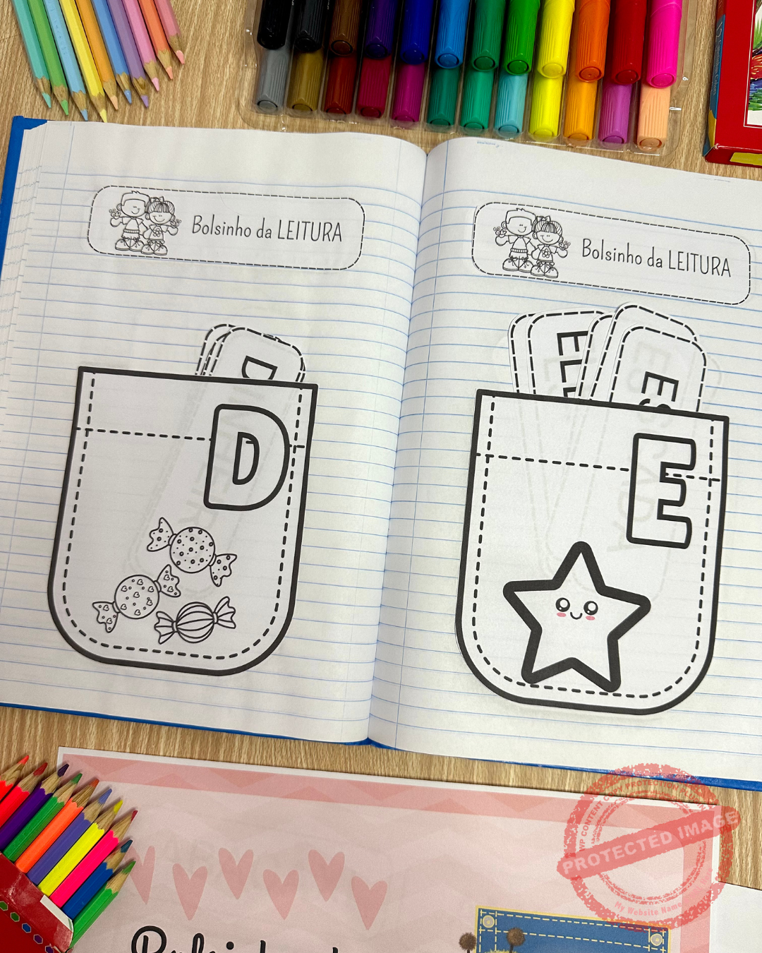 mesmo tempo, em que a criança poderá recortar e colar o bolsinho em seu caderno e realizar a leitura das
